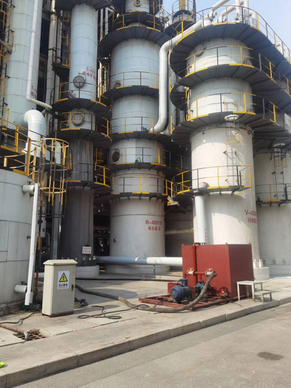 2.塔器設(shè)備循環(huán)清洗;循環(huán)清洗是利用清洗泵站為外加動(dòng)力,通過清洗液在清洗系統(tǒng)內(nèi)進(jìn)行循環(huán),使清洗液與設(shè)備、管線內(nèi)表面的油污進(jìn)行反應(yīng),以達(dá)到脫脂目的。